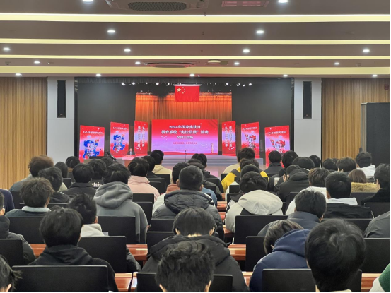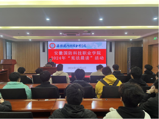 为深入学习贯彻党的二十大和二十届三中全会和全国教育大会精神,贯彻落实习近平法治思想,持续推动宪法宣传教育,12月4日上午,由校党委宣传部主办、校团委承办、电气技术学院协办的“宪法晨读”活动在校产教融合中心第一报告厅顺利举办,电气技术学院140余名学生参与此次活动。