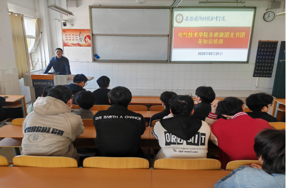 本网讯 为规范团员发展程序,严把新发展团员入口关,全面提升新团员发展质量,做好新时期从严治团背景下共青团组织建设工作,3月21日中午,电气技术学院组织全体在校团支书开展团员发展知识培训工作,会议由学院电气技术学院团总支书记陈俊主持。