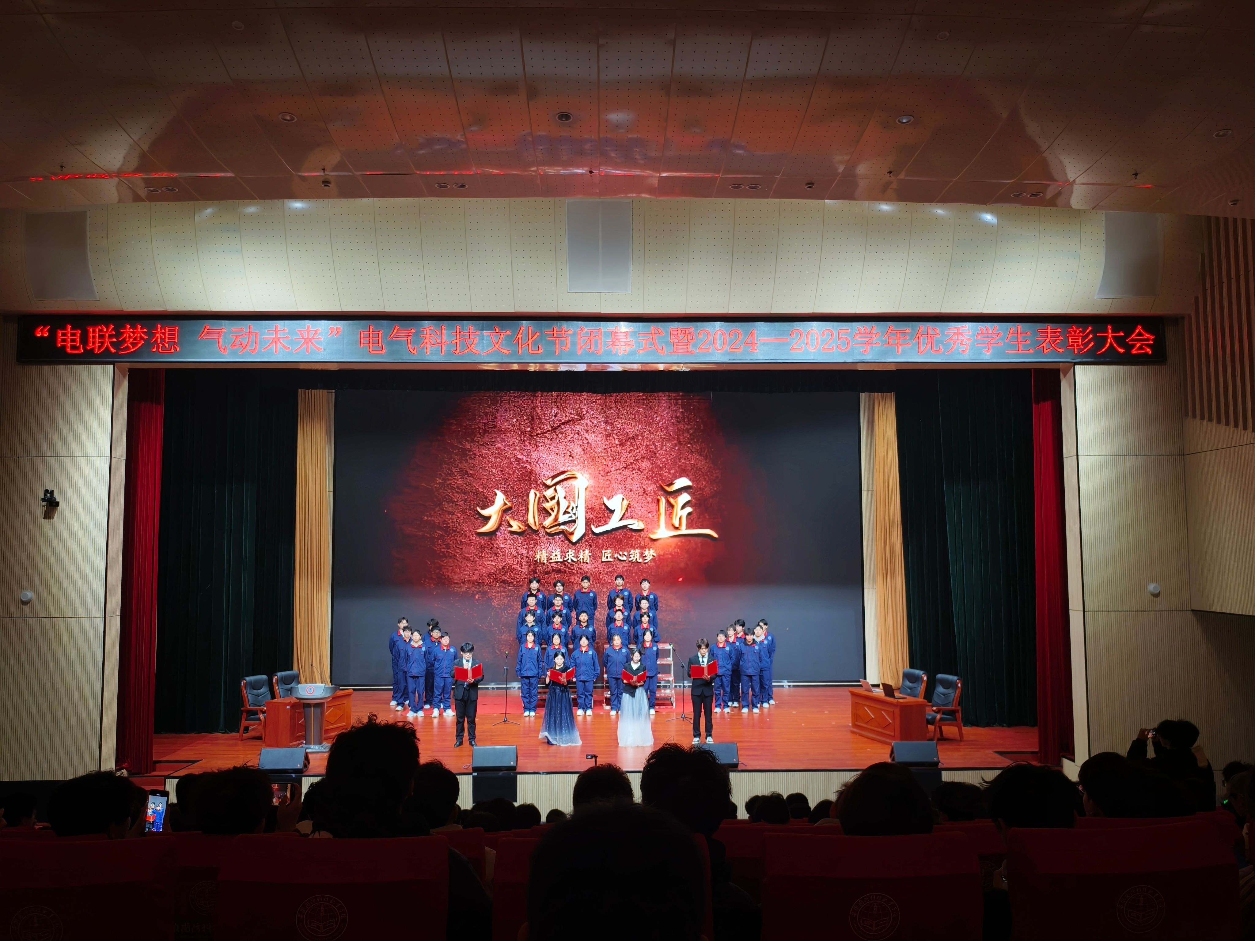 最后,大会在温暖而有力的歌声中,大会圆满落下帷幕。本届电气科技文化节虽已结束,但科技探索与文化传承的种子已深深扎根。学院将继续坚持“以赛促学、以文化人”,为培养更多高素质技术技能人才而不懈努力,激励全体电气学子在新的征程上,不忘初心,砥砺前行,闪耀属于他们的时代光芒。