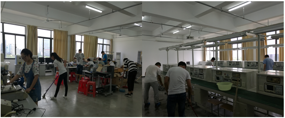 同学们在老师的带领下,认真打扫实训室卫生,确保干净、整洁的参观环境;同时在老师的指导下将各类仪器设备摆放整齐有序,这些准备工作,不仅为教研室团队向新生介绍实训室的特色(学生作品展示、实训条件、各专业特色、实训情况及优秀实训室等)打下了坚实的基础,而且有利于把我系良好人文风貌展现给学生和家长。