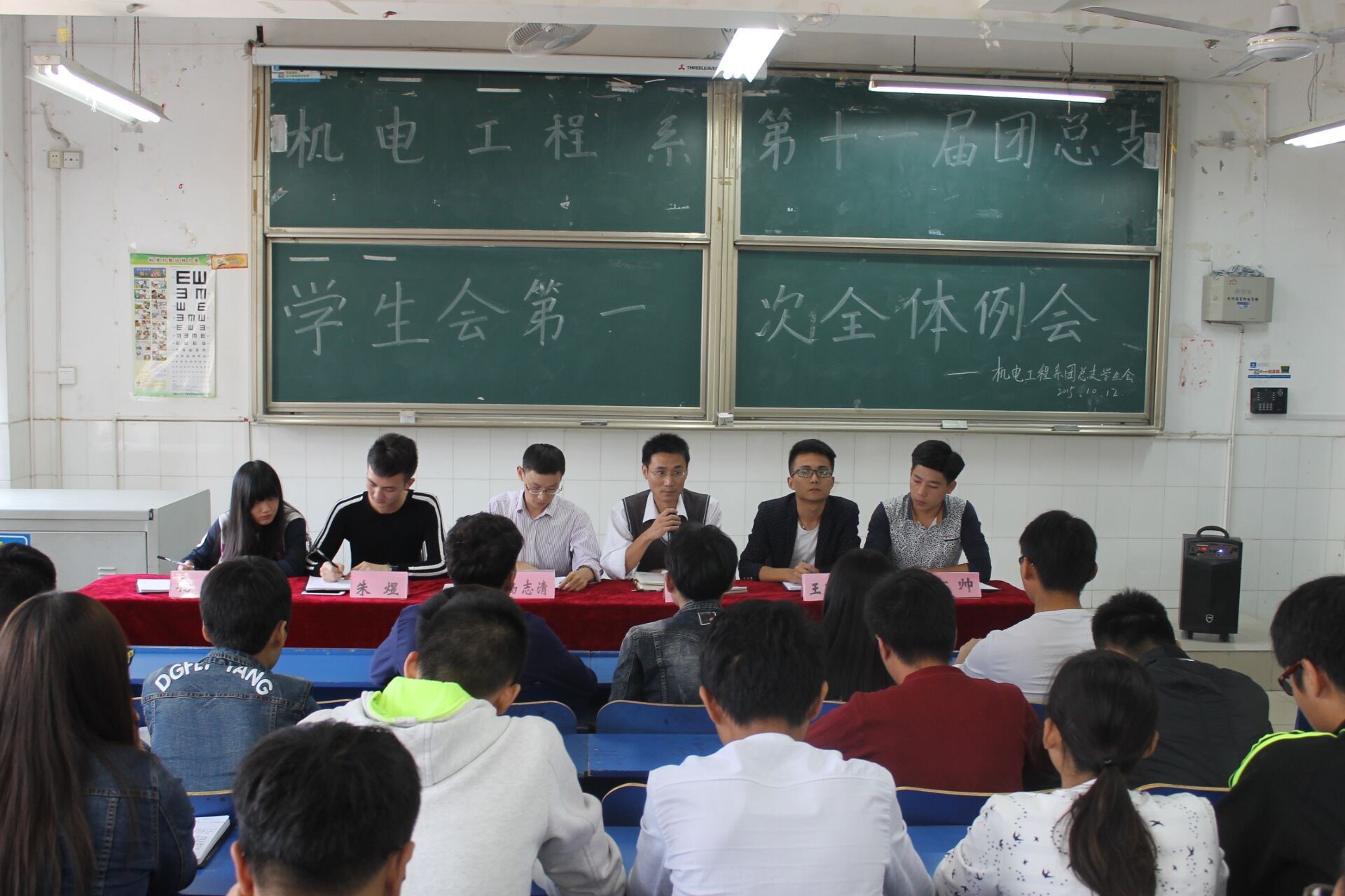 新的学期,新的开始。为了确保本学期的各项工作能够有条不紊、顺利开展,立足新起点,力上新台阶。10月12日中午,机电工程系学生会在2教105召开机电工程系第十一届团总支学生会第一次全体例会。系党总支副书记罗威、2015级辅导员杨志清出席会议,学生会主席王跃龙,副主席杨莹、卞帅以及学生会全体学生干部参加本次会议,会议由团总支副书记朱煜主持。
