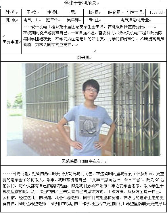 机电工程系学生干部风采录——王松