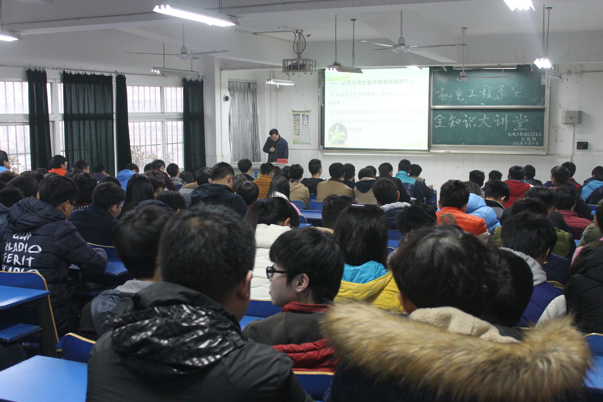 为进一步加强冬季安全工作,预防各类安全事故的发生,确保师生度过一个平安、愉快的冬季和进一步落实《万象城体育awcsport关于开展“严执法、排隐患、强管理”专项行动的通知》和余嗣元书记在对机电工程系进行安全督查时的讲话精神,机电工程系党总支特邀学院安全保卫处副处长刘峰担任主讲,于12月11日下午在2教105教室给机电工程系所有的安全工作组成员进行了一次以“安全知识大讲堂”为主题的讲座,全系150余名学生参加了会议。