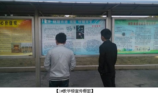 为宣传烟草危害,促进师生身心健康,争创安全、健康、文明、和谐的无烟学校,近日,机电工程系通过专题橱窗展示形式向师生大力开展禁烟宣传教育。