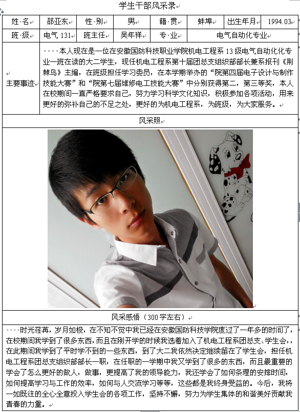 机电工程系学生干部风采录——邵亚东