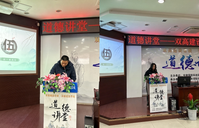 为全面落实立德树人根本任务,扎实推进“双高”建设,不断提升人才培养质量,进一步加强学风建设,在广大师生中营造创先争优的良好学风,12月20日下午,由校党委宣传部主办、电气技术学院承办的“双高建设有我 共创优良学风”道德讲堂在校图书馆报告厅隆重举行。电气技术学院院长李翔、皖西学院电气与光电工程学院团委书记冉旭、电气技术学院党总支副书记张丽、电气技术学院副院长江治国、皖西学院电气与光电工程学院团委副书记吕长勇、电气技术学院全体辅导员和全校近200名学生代表参加了此次活动。
