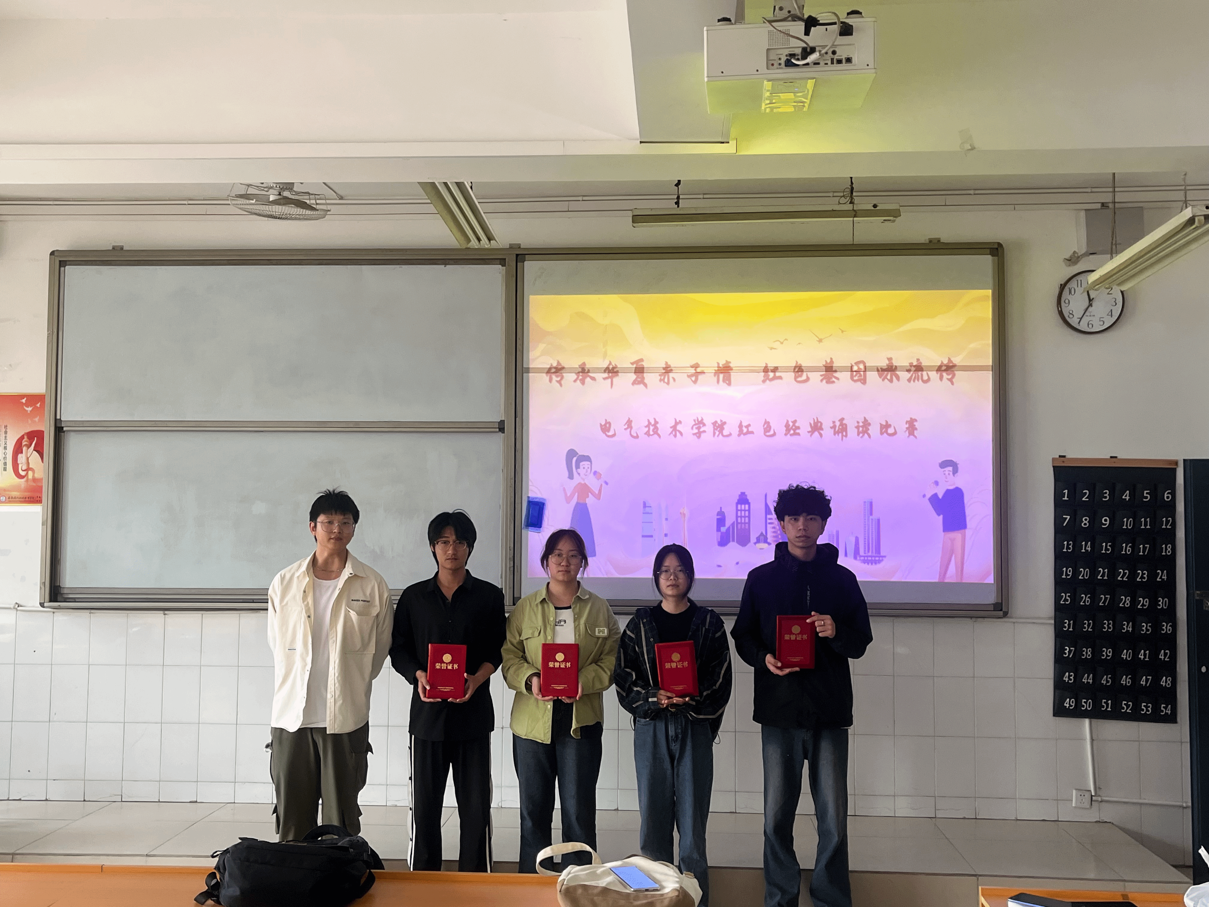 为持续弘扬爱国主义精神,进一步推进校园文化建设,深入挖掘与诠释中华传统文化的内涵,4月20日下午电气技术学院在2教105举行“传承华夏赤子情 红色基因咏流传”红色经典诵读比赛。通过前期征集优秀作品、初评环节,最终刘金贵等9位同学进入决赛。