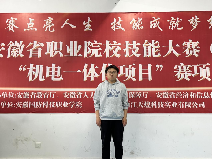 杨帅,共青团员,电气技术学院电气自动化专业2020级学生。自2020年升入本校以来,时刻将学习放在首位,在认真学习的同时,积极参加职业技能类竞赛,加强自己的专业技能,曾获“全国职业院校技能大赛高职组机电一体化项目团体三等奖”、“安徽省职业院校技能大赛高职组机电一体化项目团体二等奖”。