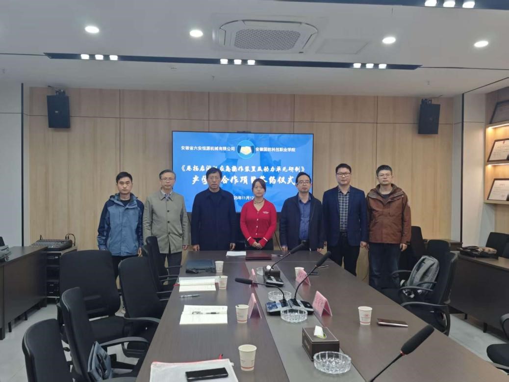 本网讯(电气技术学院 张超)11月12日,万象城体育awcsport党委委员、副校长袁旗带领电气技术学院院长李翔等一行6人,前往安徽省六安恒源机械有限公司开展访企拓岗活动,并举行产学研合作签约仪式。公司总经理陈荣娜、总工程师黄振东热情接待了来访一行,双方围绕人才培养、人才需求、技术攻关、平台建设等议题展开深入交流,并共同签署了《卷扬启闭机应急操作装置及动力单元研制》项目合作协议,续写校地企协同发展新篇章。