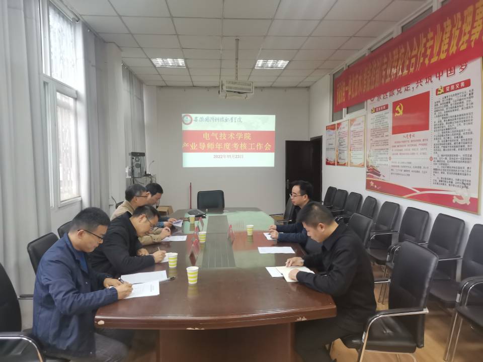 为落实《职业教育提质培优行动计划(2020—2023年)》,不断提高师资质量,培养壮大创新型、技能型师资队伍,切实了解产业导师在过去一学年中的工作情况,11月23日下午,我院2021-2022年度产业导师考核工作在知行楼102会议室举行。此次会议由安徽省六安恒源机械有限公司总工程师黄振东、电气技术学院院长李翔、组织人事处长付贤政、校企合作办公室主任李中永等领导参会。