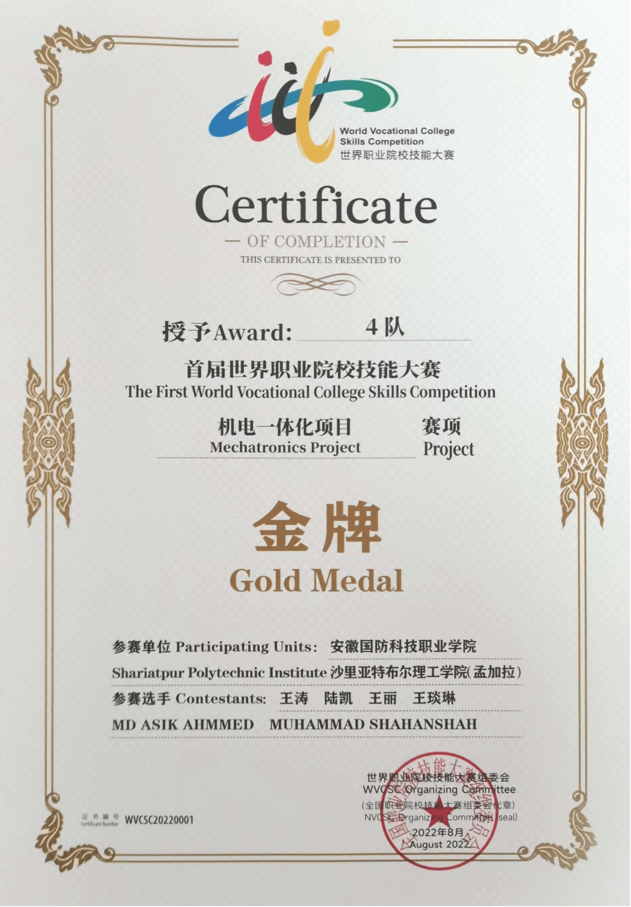 1 | 2022年世界职业院校技能大赛机电一体化项目 | 王涛、陆凯等 | 世界级 | 金牌 |