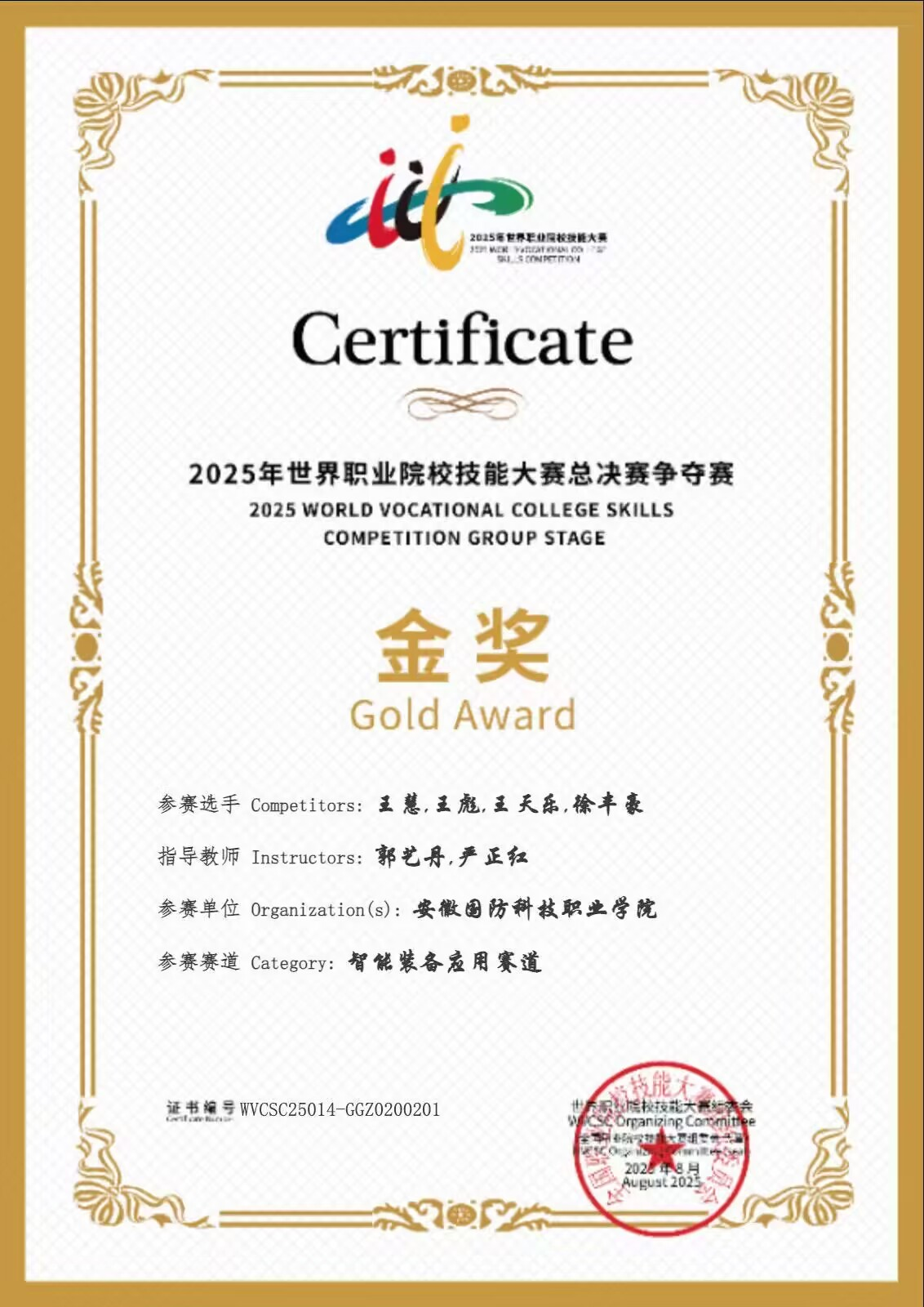 2 | 2025年世界职业院校技能大赛总决赛争夺赛智能制造应用赛道高职组 | 王彪、王天乐、徐丰豪、王慧 | 国家级 | 金奖 |