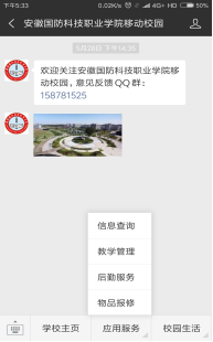 2、点击“应用服务”|“后勤服务”菜单,再点击“校园一卡通”图标(第一次使用要按提示绑定账号)。