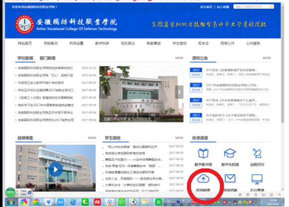 1.打开学院新网站主页“/”,点击右下方的“校园网盘”