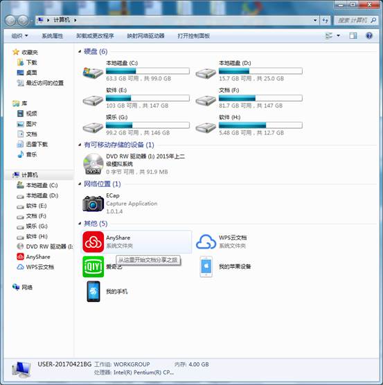 13.下次可以通过“我的电脑”中的“anyshare”打开