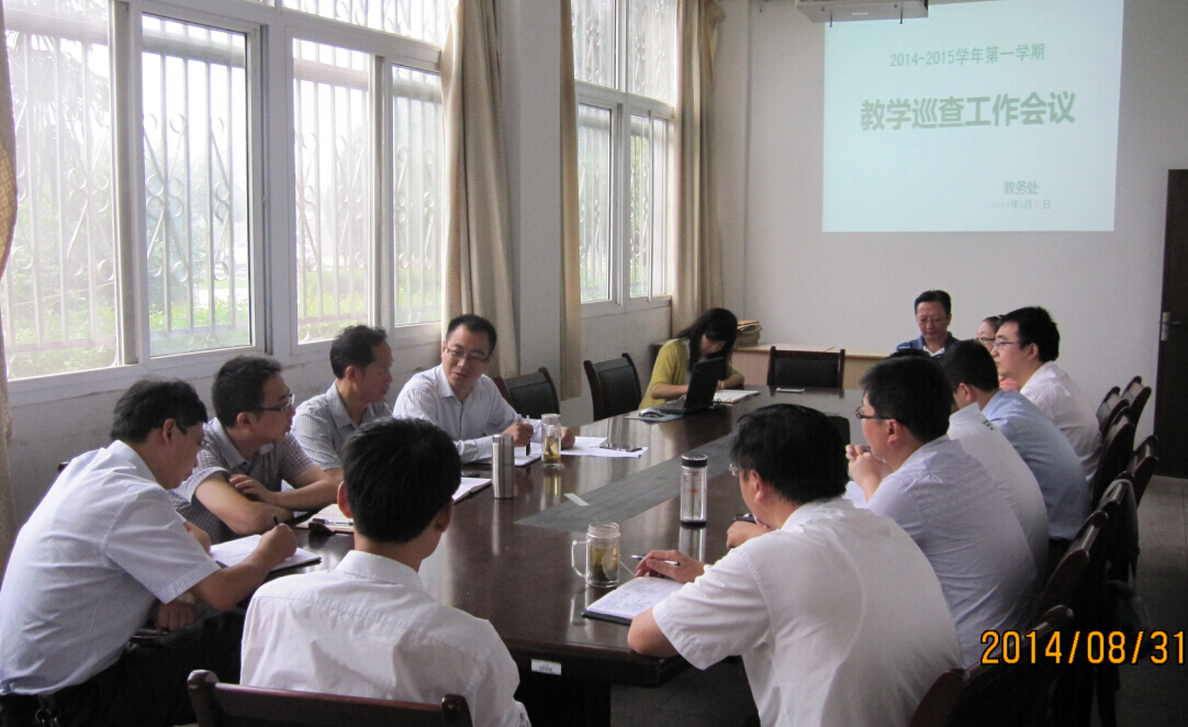 2014年8月31日上午9:30,教务处召开了2014-2015学年第一学期教学巡查工作会议。会议由教务处副处长付贤政主持,教学巡查组成员参加了会议。