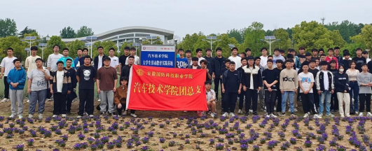 信息技术学院和汽车技术学院组织学生为校园花圃除杂草的义务劳动。