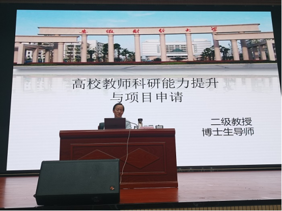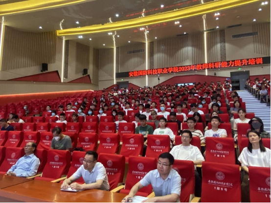 本网讯(教务处:王凯)为促进学校“双高校”建设,不断提升师生科研能力,5月31日下午,学校邀请了安徽财经大学盛明泉教授在产教融合中心报告大厅开展了题为《高校教师科研能力提升与项目申请》的专题讲座。校党委副书记、校长李麟书、校党委委员、副校长李存鹏、相关部门负责人及部分师生参加讲座。