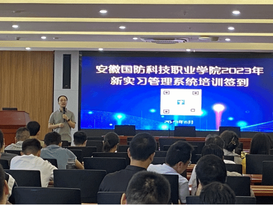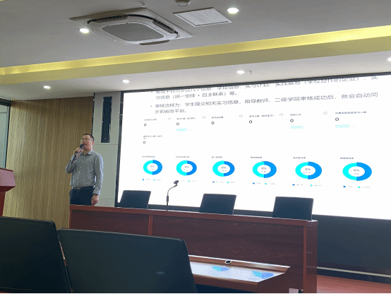 6月9号下午,学校实习管理系统培训会在产教融合第一报告厅顺利举办。会议由教务处副处长韩玉龙主持,邀请工学云技术经理王肖肖为大家做培训,全校实习指导老师、二级学院管理员等人员参加会议。