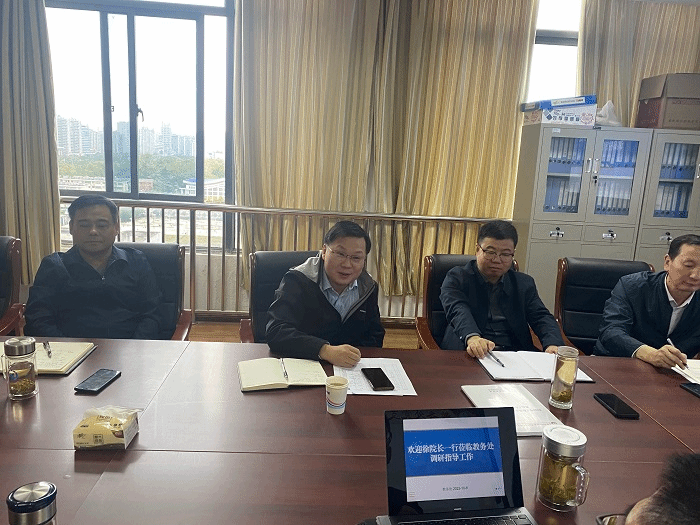 10月8日下午,徐正红院长莅临教务处指导调研,党委委员、副院长李存鹏,党委委员、工会主席黄存东,党政办主任李大武陪同调研。教务处全体人员参加调研座谈会,会议由副院长李存鹏主持。