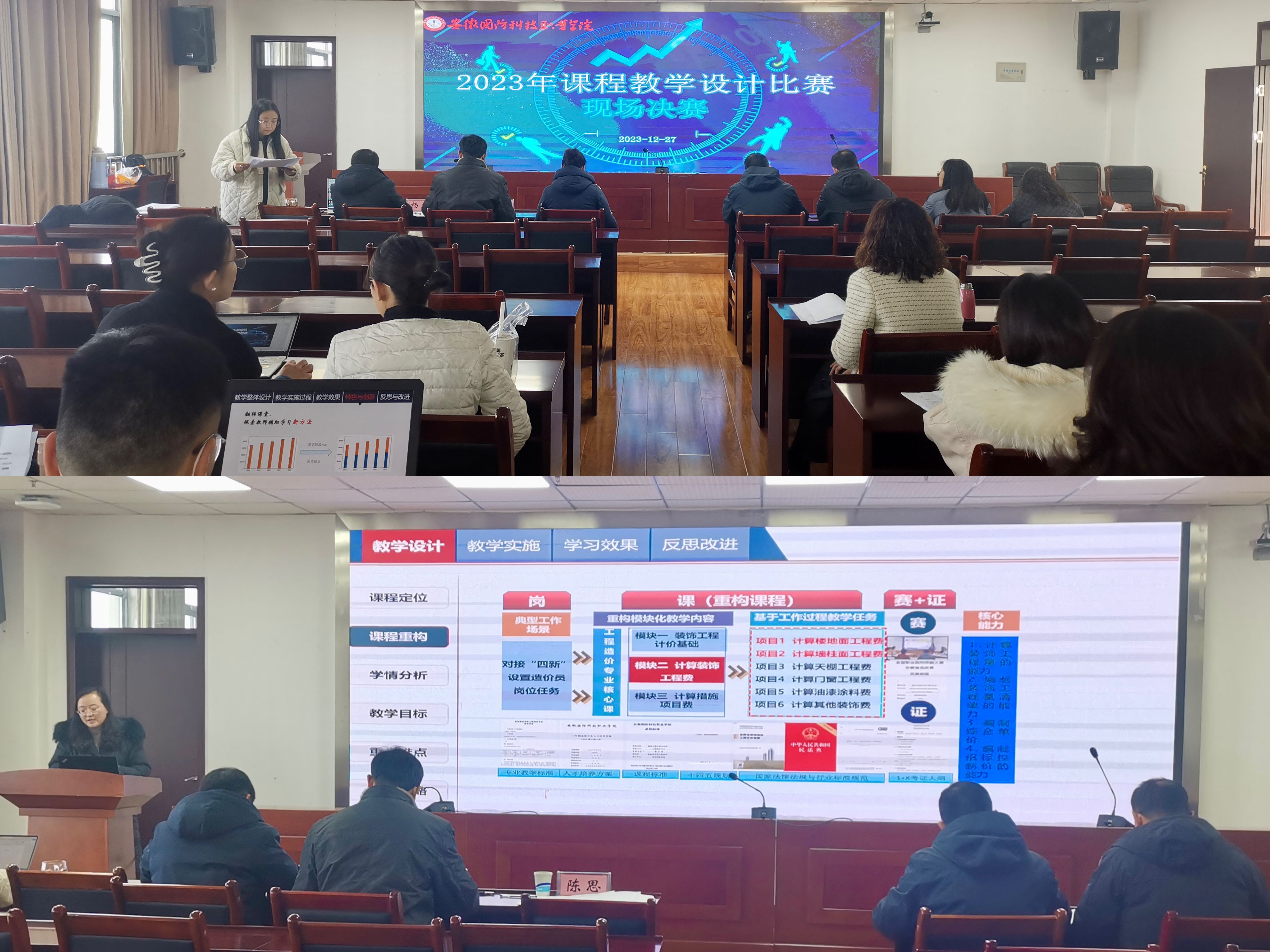 12月27日,2023年度说专业(群)比赛、课程教学设计比赛、课堂教学比赛现场决赛顺利举办,前期经过各学院(部)初赛及推荐,共选拔出说专业(群)比赛11组、课程教学设计比赛15组、课堂教学比赛16组参赛队伍进入学校决赛。