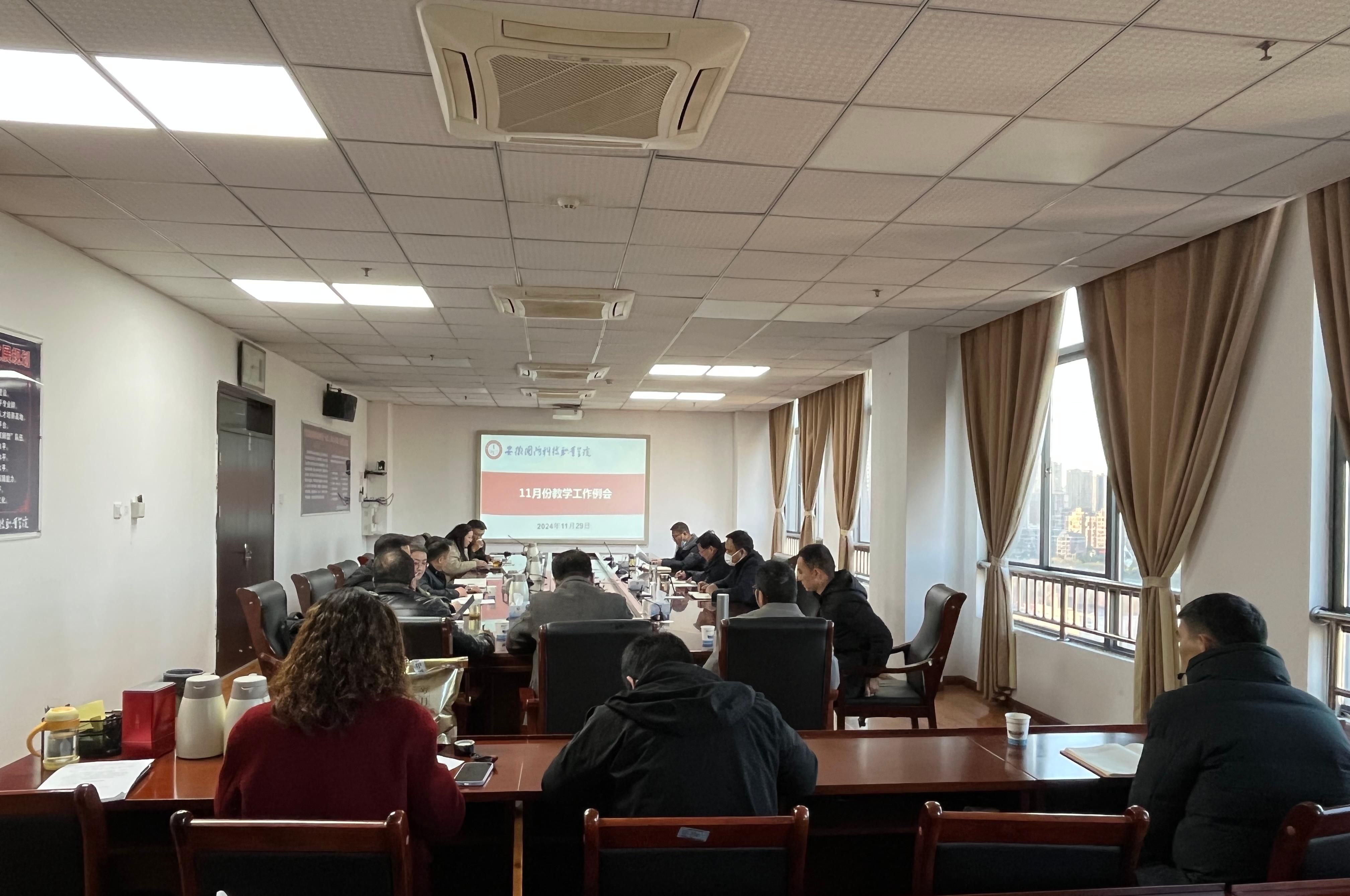 11月29日下午,学校在秉心楼11楼第一会议室组织召开11月份教学工作例会。党委副书记、校长徐正红主持会议。各教学单位、教务处、质管办等部门负责人参加会议。