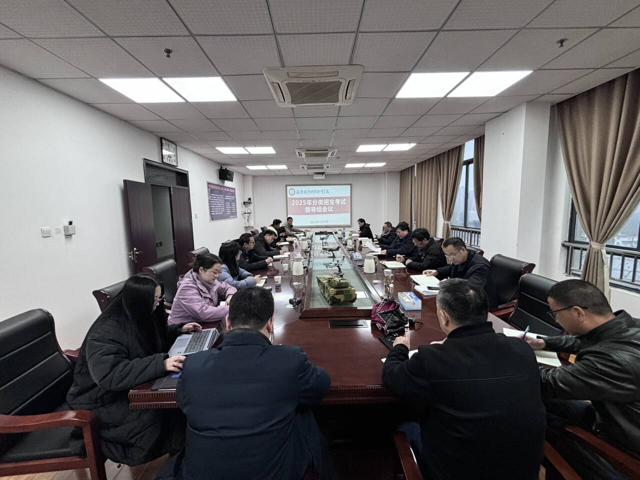 为确保2025年分类考试招生安全、有序、顺利完成,学校于3月3日上午在秉心楼第一会议室召开了分类考试招生工作领导组会议。校领导、各二级学院负责人及相关职能部门负责人出席会议,共同研讨考试工作的具体安排与实施方案。