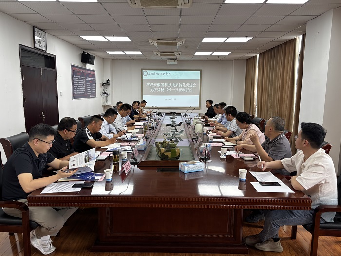 校长徐正红代表学校对来宾表示热烈欢迎,并介绍了学校近几年在人才培养,专业建设和校企合作方面的的发展情况。吴济贫秘书长介绍了安徽省科技成果转化促进会的主要业务。校会双方聚焦低空经济、人工智能等技术领域,就如何推进产教融合、人才培养、校企合作、技术转化等方面进行了深入研讨。