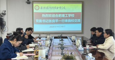 11月18日上午,合肥理工学校党委书记张良平一行万象城官网交流,双方在秉心楼第一会议室围绕高职专业学院内涵建设开展深度研讨。校党委副书记、校长徐正红,教务处、学生处、招生就业办公室、机械技术学院等相关部门负责人参加交流会。