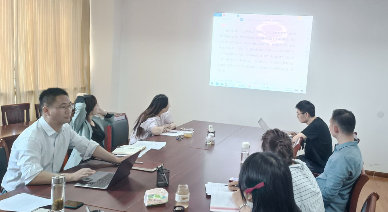 第一阶段,由朱处长带全体职工学习习近平总书记在中国人民大学考察时的重要讲话和安徽省十四五教育规划纲要。会上朱处长总结了习总书记讲话的重要意义,并和与会职工深入探讨了如何将人才培养、师德师风、职业素样等元素融入到教学工作中来,就教务工作接下来做好、做细提出了几点思考。最后鼓励青年教师不负韶华、不负时代、不负人民,努力争当时代先锋。