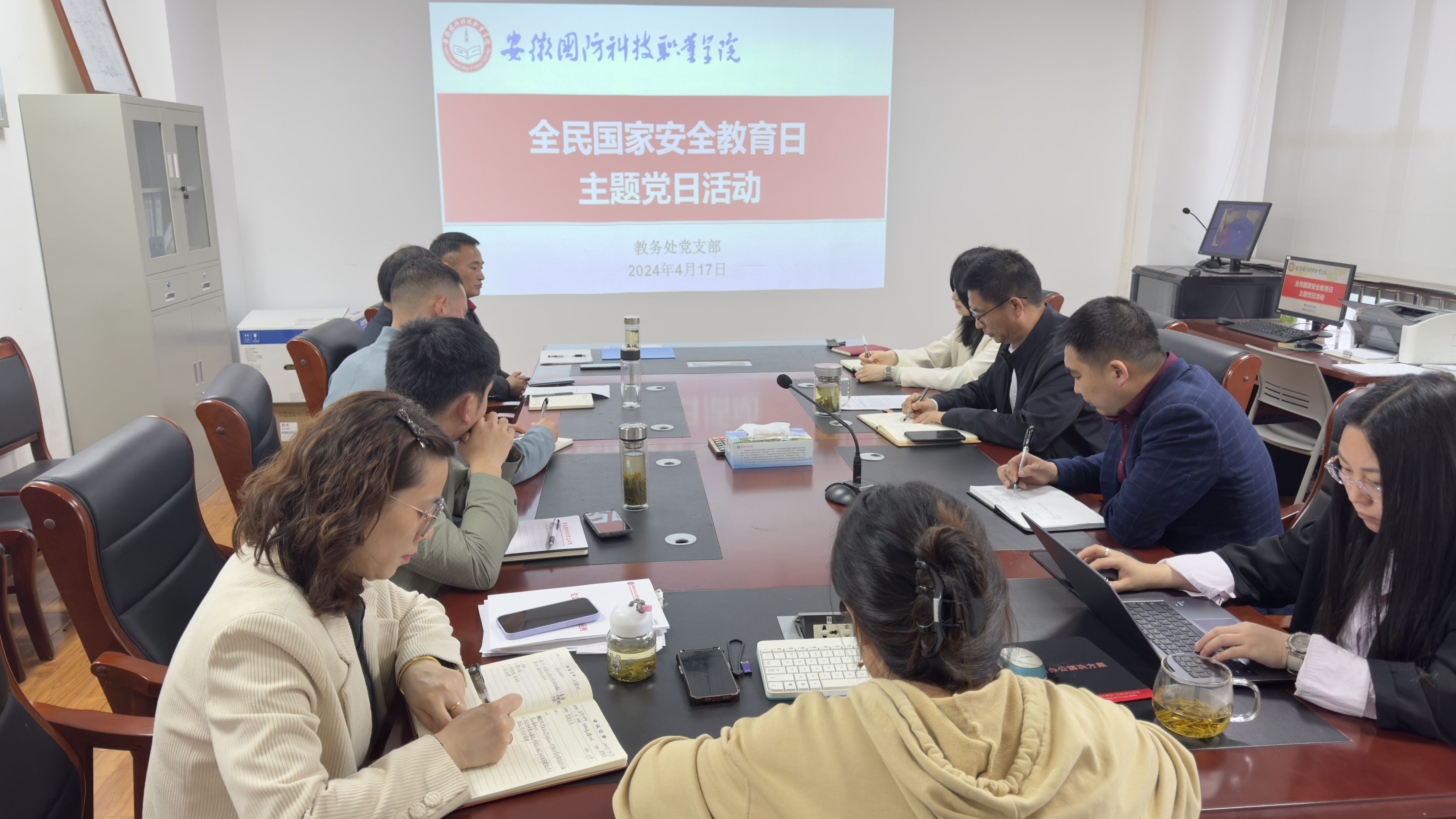 为了全面提升教师的国家安全意识,构建坚实的国家安全防线,进而增强防范和抵御安全风险的能力,教务处党支部于4月17日组织“全民国家安全教育日”的主题党日活动。