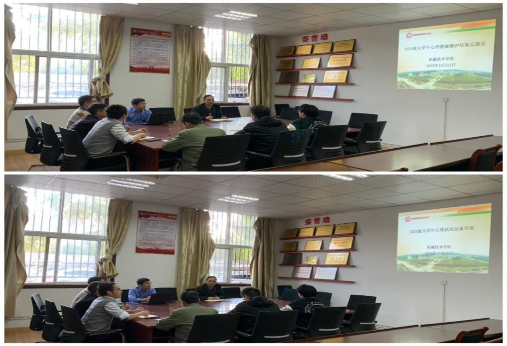 (机械技术学院 陈建)为进一步强化大学生心理健康教育,确保新生的心理健康,近日,机械技术学院在知行楼120会议室,组织召开心理普测结果反馈暨访谈筛查培训会。会议主要部署了2024级新生心理测评工作,并就相关心理健康教育工作进行了培训和安排,学院党总支副书记张红军(主持工作)、24级全体辅导员参加了会议,会议由学院心理辅导员陈建老师主持。