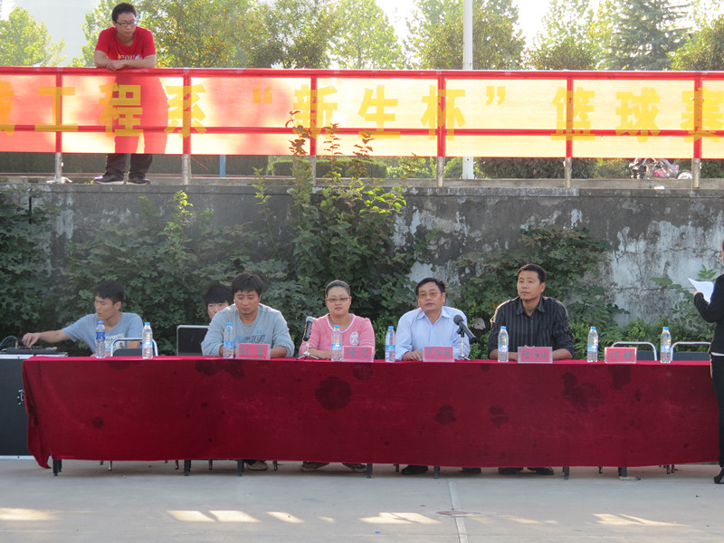 2013年10月9日下午,机械工程系新生杯”篮球赛在学院风雨操场正式拉开了序幕。本届篮球赛共有7支代表队参赛,系党总支书记吴方庭、副书记陈思、院团委书记张伟业、团总支书记孙策出席开幕式。