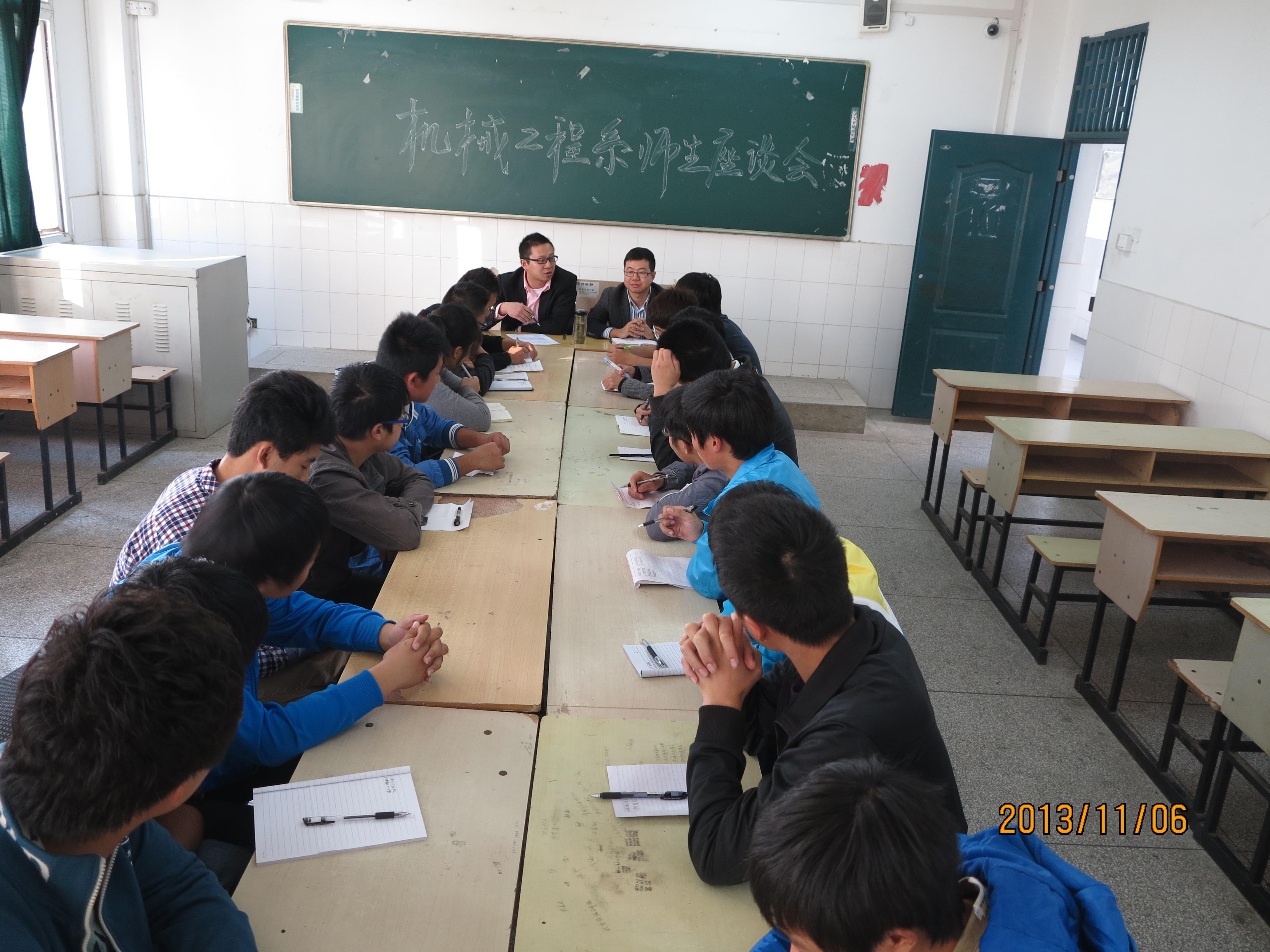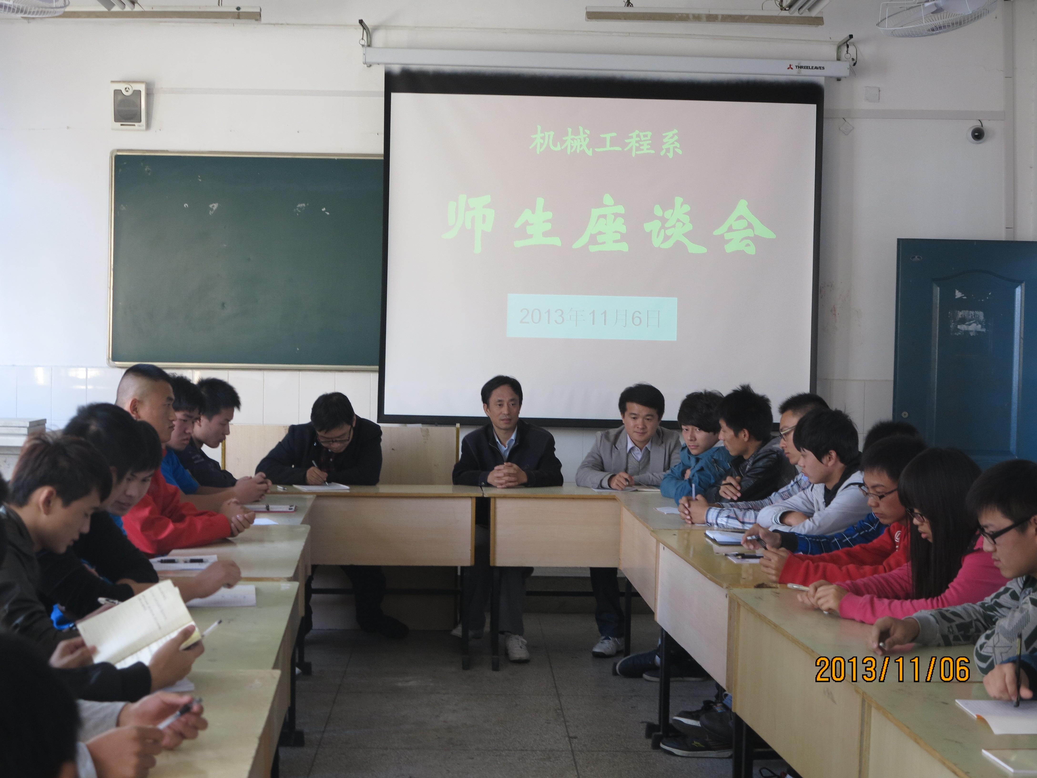 2013年11月6日下午,机械工程系召开学生座谈会。束传俊、陈祥敏、李存鹏等12位教师出席座谈会,来自全系各年级80多名学生代表参加了座谈。