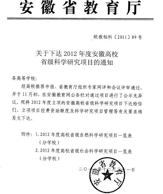 接省教育厅皖教秘[2011]89号文,我院机械工程系三位老师成功申报2012年度安徽省高校自然科学资金项目。分别是: