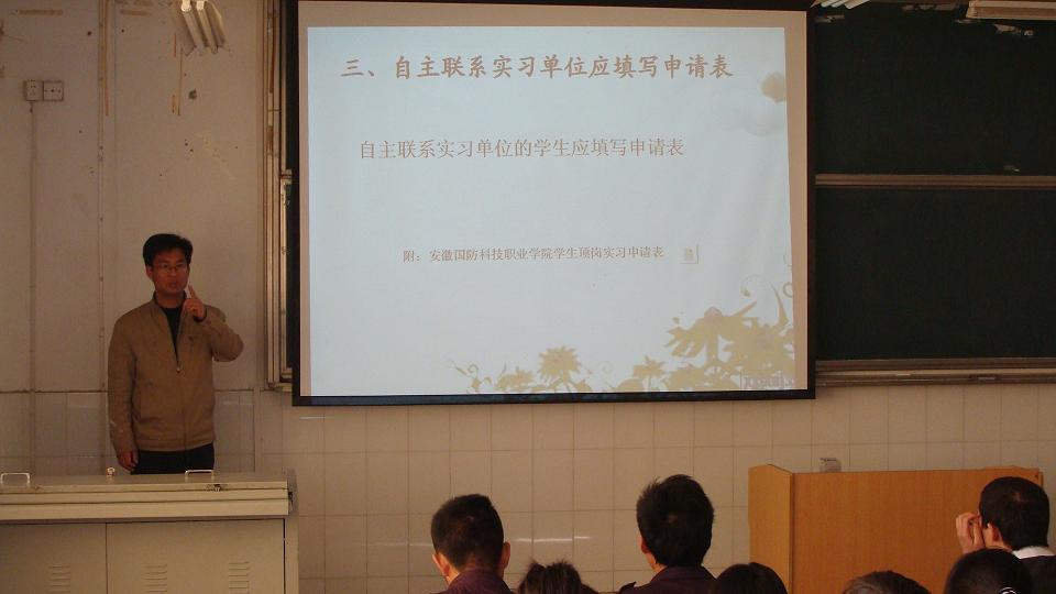 2010年4月27日下午,在2#105教室,机械工程系副主任朱修传老师组织召开06级五年高职三个班的学生的顶岗实习专题会议,根据学院最新的顶岗实习管理办法,对这三个班接下来的顶岗实习作了具体要求.要求学生严格按照新的顶岗实习办法高质量地完成顶岗实习环节.