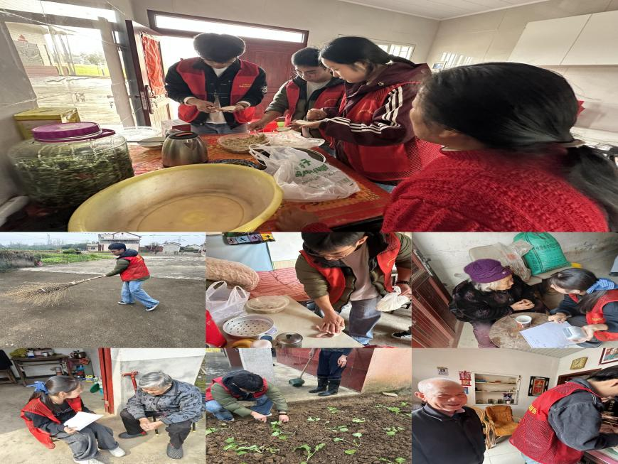 走进老人家中,志愿者们先是主动帮忙打扫庭院、擦拭家具,陪老人唠家常,仔细询问老人近期的生活情况和健康状况。学院2024级学生蒋明玉同学,一边为老人包着饺子,一边耐心叮嘱保存、食用注意事项。