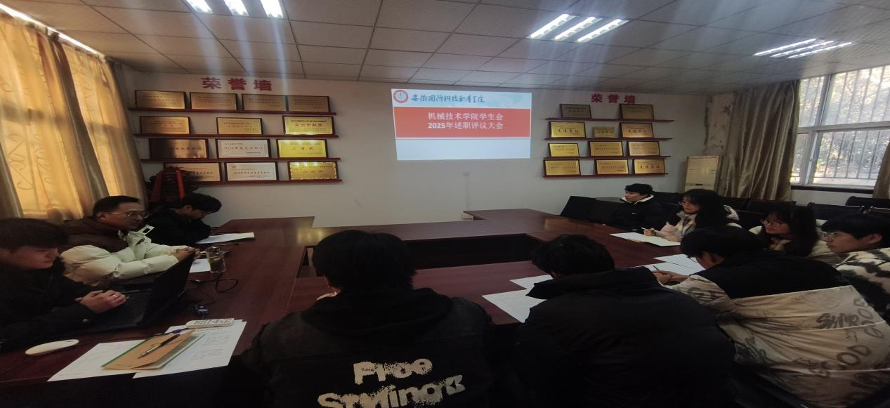 (机械技术学院 王腾州)为进一步强化学生骨干的责任担当意识,持续提升学生会服务师生的工作水平,根据上级《关于开展 2025-2026 学年第一学期学生会工作人员述职评议工作的通知》文件精神,12月25 日,机械技术学院学生会在知行楼120会议室,召开学生会骨干述职评议大会。学院团总支书记王腾州、学生会主席团成员及各工作部门负责人参加会议,会议由王腾州主持
