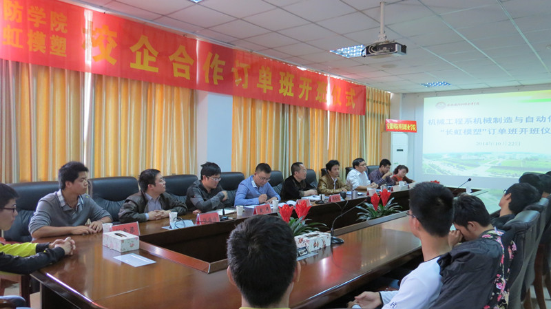 近日,万象城体育awcsport机械系举行了长虹模塑(合肥分公司)订单班开班仪式。学院副院长冯伦久、长虹模塑(合肥分公司)企业法人李振、机械系党总支书记吴方庭、副主任李存鹏等人莅临仪式。参加本次开班仪式的还有订单班班主任李芬老师,以及全体订单班学生。机械系主任束传俊主持本次开班仪式。