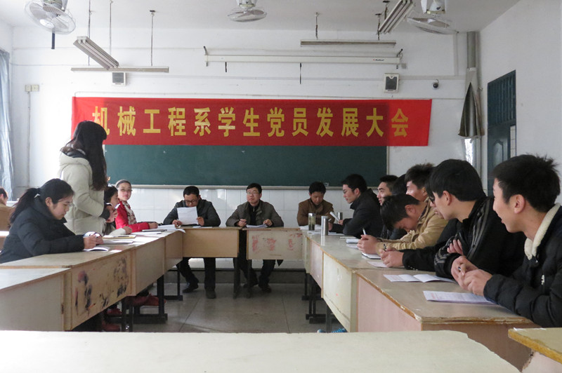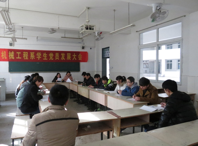 2014年12月31日下午,机械工程系第一党支部、第二党支部分别在教二楼102、103教室召开支部大会,讨论接收汪谦明等24名入党积极分子为预备党员。会议由各支部书记主持,支部党员及本批申请入党的积极分子参加了会议。