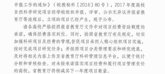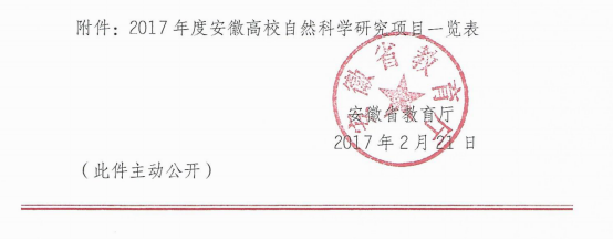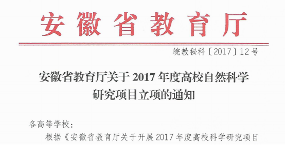 安徽省教育厅关于2017年度高校自然科学研究项目立项的通知
