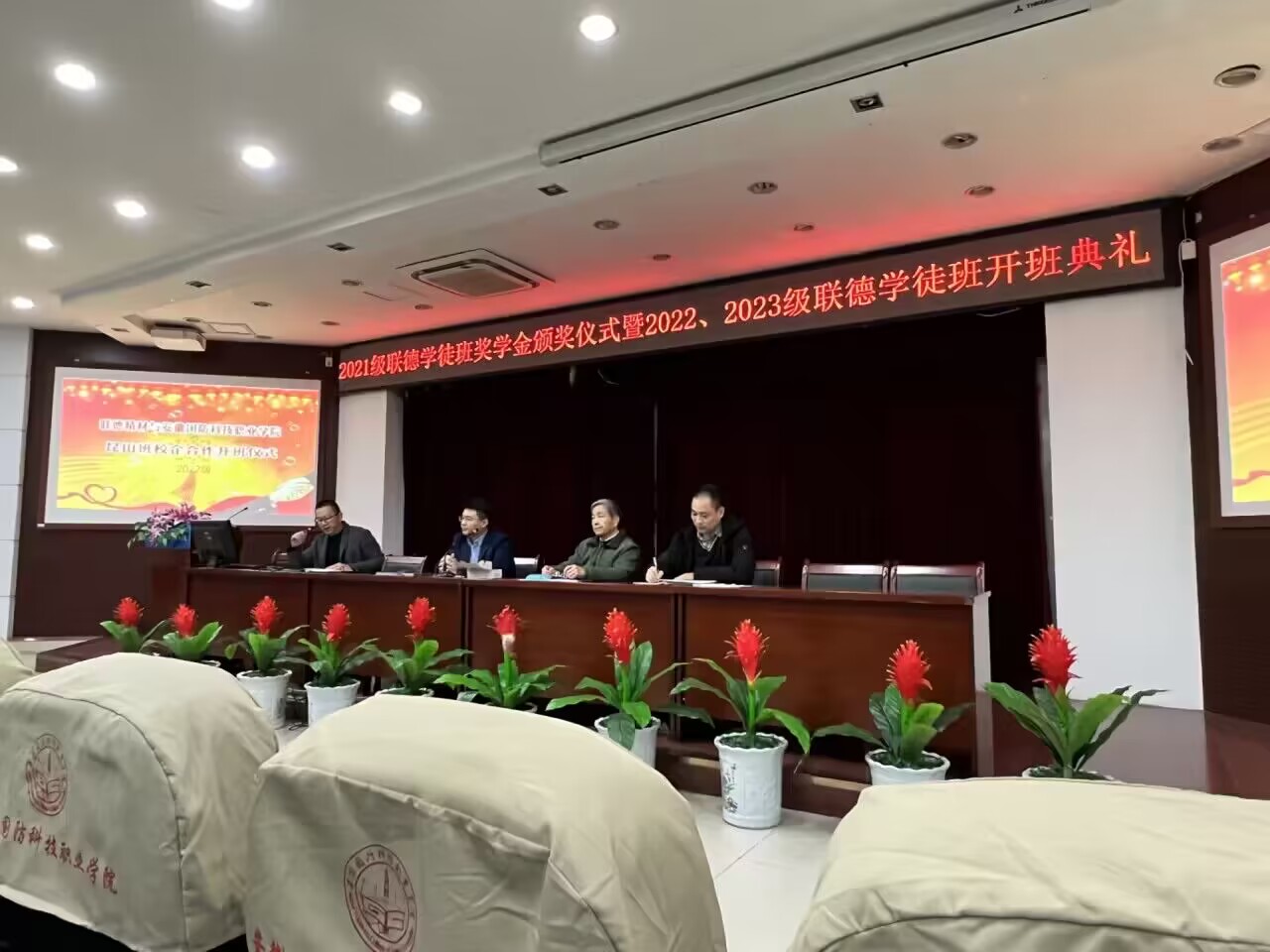仪式上,夏世林首先对上届订单班培养的目的及成效进行了汇报,并对21级联德学徒班表现优异学子及教师颁发了联德奖学金和联德园丁奖;随后,由联德康部长对新一届联德学徒班解读了企业在学徒班培养过程中采取的一系列措施,帮助学生适应企业文化,塑造职业心态,并由校企双方负责人在校企合作协议书上完成了签字仪式;最后,张红军书记对联德学徒班成员发表了动员讲话,同时他也希望本届学徒班能成为进一步全面深化双方合作,达成发展战略共识的契机。