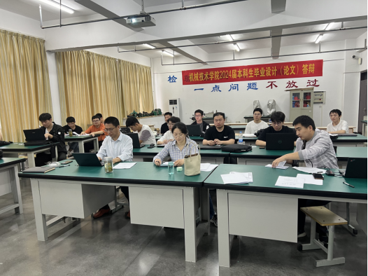 (机械技术学院 陈云)2024年5月31日-6月3日,机械技术学院组织开展了2024届联培本科生的毕业设计(论文)答辩工作。本次答辩采用现场答辩方式,对象为22级本科机制1班共计52名学生,参加此次答辩工作的涉及4个答辩小组共12位指导老师。