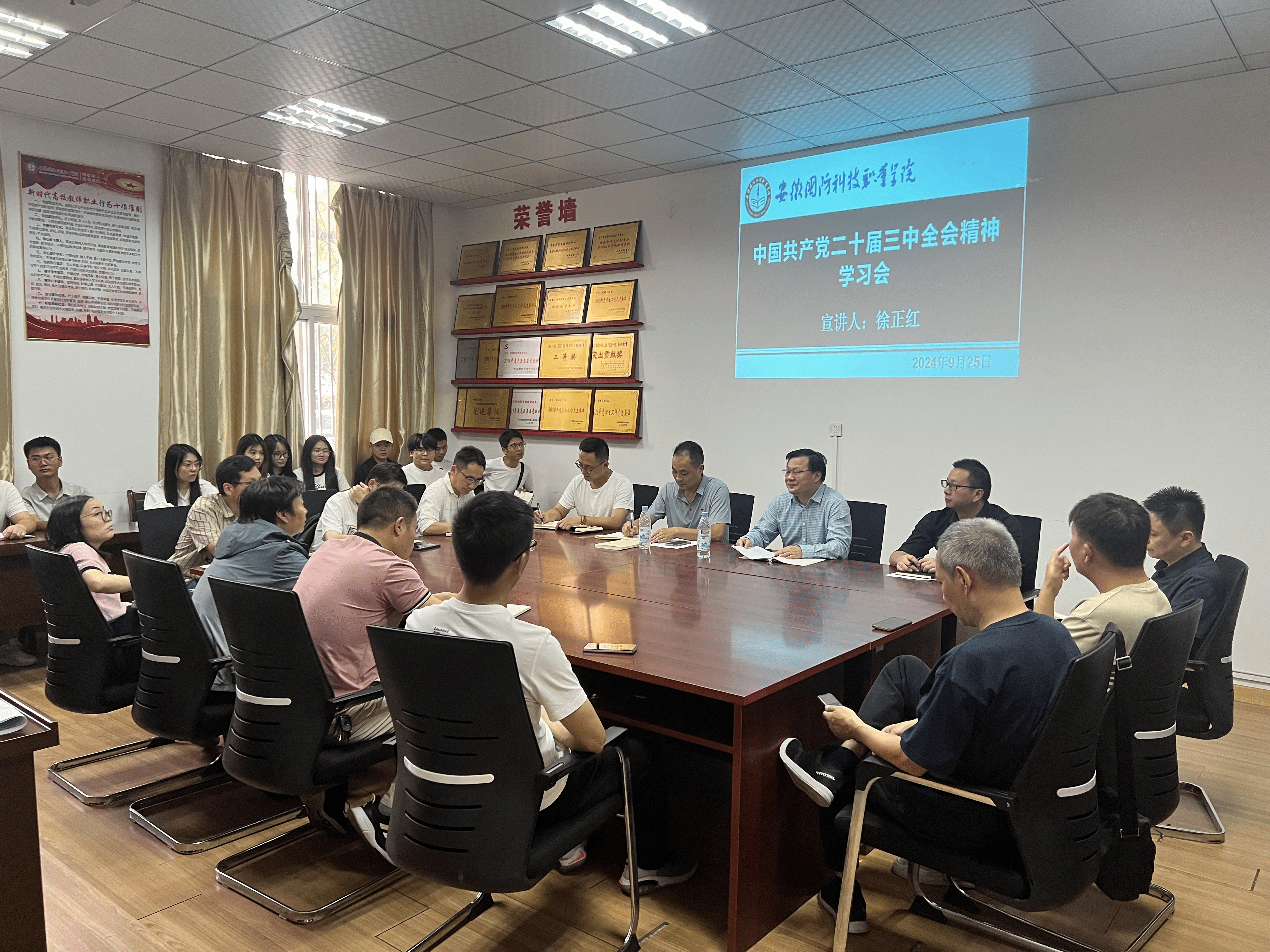 在宣讲过程中,徐正红校长还结合学校实际,就如何贯彻落实全会精神提出了具体要求。一是全体师生要原原本本学习全会精神,吃透改革要求,准确理解每项改革举措的背景和定位、指向和内涵;二是要结合工作实际,聚焦立德树人根本任务、科技创新赋能高质量发展、人才队伍引育等工作,找准贯彻落实切入点和着力点,推动学校教育事业高质量发展;三是要大力弘扬优良作风,拉高标杆、改革创新、锐意进取,狠抓落实,争当改革的促进派、实干家。