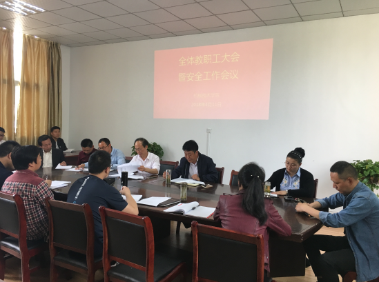 4月11日下午,机械技术学院在会议室召开全院职工大会,深入学习国务院办公厅《关于深化产教融合的若干意见》和《宪法修正案》,会议由黄祥主持。
