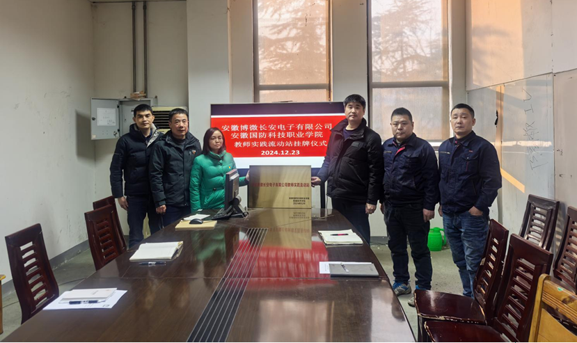 (机械技术学院 徐俊)为进一步提升机械技术学院教师实践教学能力,强化职业教育与产业需求的对接,经校企双方商定成立“安徽博微长安电子有限公司教师实践流动站”,12月23日下午,智能制造党支部书记、教研室主任龚灯与博微长安公司省级技能大师王勇,共同为教师实践流动站揭牌。