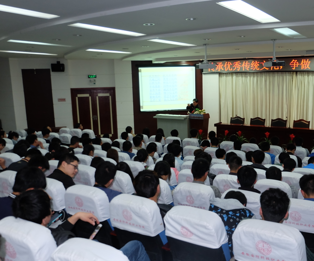 机械工程系党总支邀请赛皖西学院组织部部长方友根副教授于4月16日晚,在图书馆报告厅作了“传承优秀传统文化,争做优秀共产党员”为主题教育党课。机械工程系全体党员和学生入党积极性分子聆听了党课,党课由系党总书记吴方庭主持。