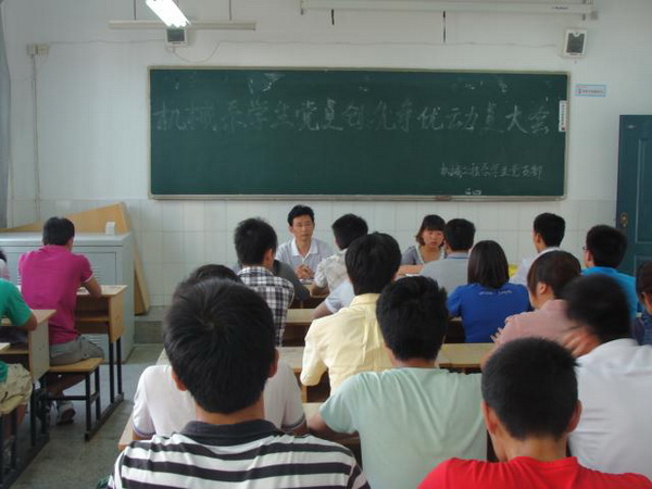 5月18日机械工程系党支部在2栋103召开了“我的宿舍我模范,我的责任请放心”为主题的党员示范工程活动。会议由机械工程系束传俊书记作动员讲话,学生党支部书记项华老师主持。