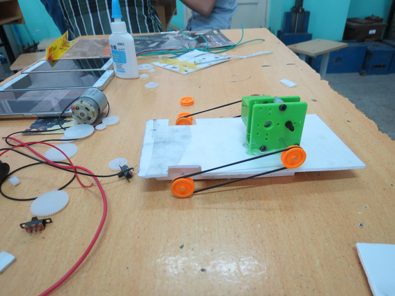 决赛现场,经过初赛的绘图环节选拔后,共有10组队伍进入了决赛,裁判宣布比赛开始后,参赛选手们便进入了争分夺秒的制作当中,根据自己设计的图纸对作品进行调整和装饰,经过两个多小时的精心制作,由机制2班的金歌、催超龙和张文涛三位同学获得了本次比赛的一等奖。