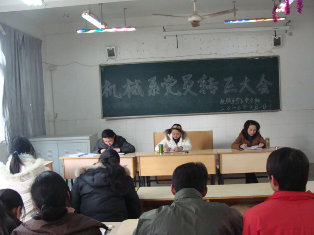 2010年元月1日上午9:00,在2#103教室,机械系召开预备发展党员大会,会议由学生党支部书记王程老师主持,陈思和项华两位老师参加了此次大会,本次我系共发展11名预备党员,转正31名正式党员,会后发展和转正的同学合影留念,会议于上午11:30圆满结束